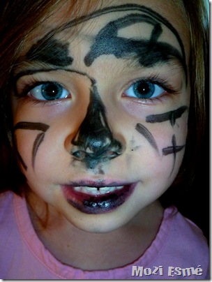 And while I was preoccupied with juggling practice, Esmé disappeared for a few moments and came in to join the act – as the clown…